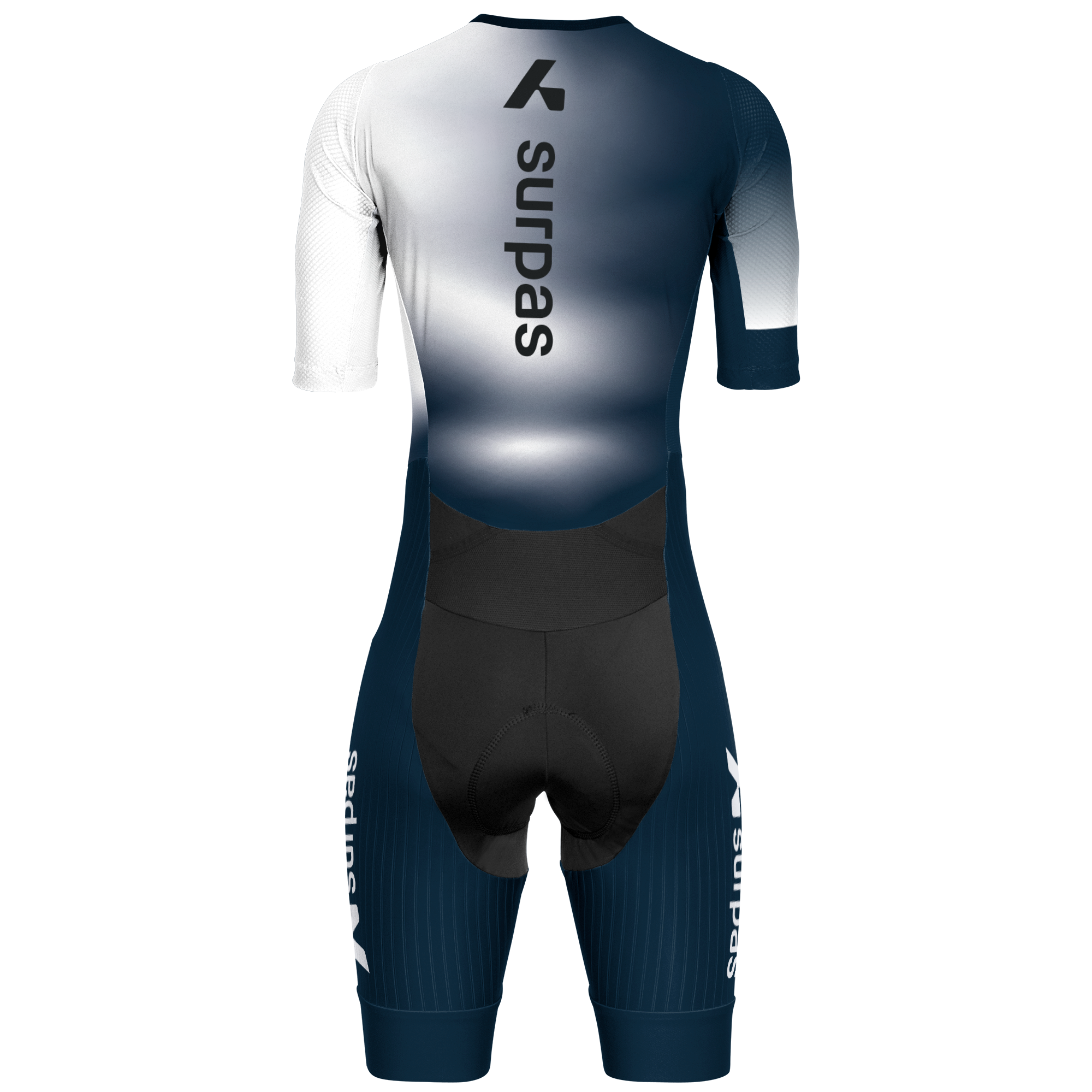 The speedsuit is among the world's fastest triathlon suits, and has been developed in collaboration with professional triathletes and engineers at the Norwegian University of Science and Technology (NTNU) in Trondheim. The suit has the perfect combination of aerodynamics and materials that are optimized for hydrodynamics. It fits well on the body and has a number of high-quality technical features that ensure great mobility and great comfort. The suit has a golf ball like structure on the shoulders and a stripe structure on the thighs to optimize aerodynamic performance when on the bike. Also, to further reduce friction, the suit comes with extra length on the arms and thighs.