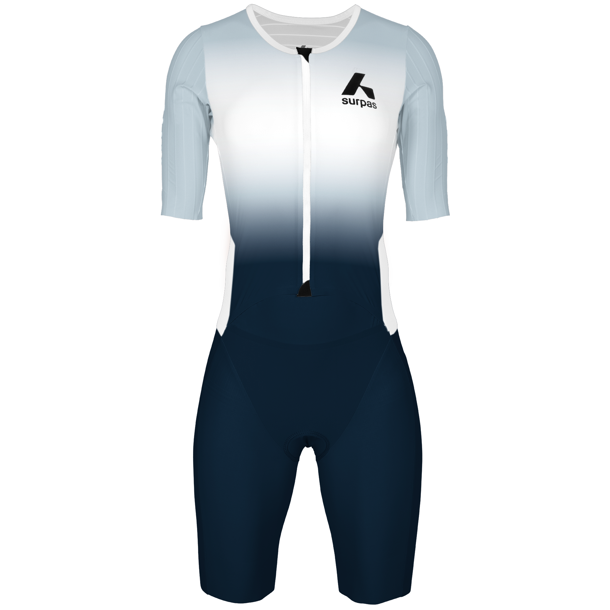 Long Distance Speedsuit with long-distance padding. The suit has aerodynamic turbulators on the shoulders and a back pocket for nutrition.