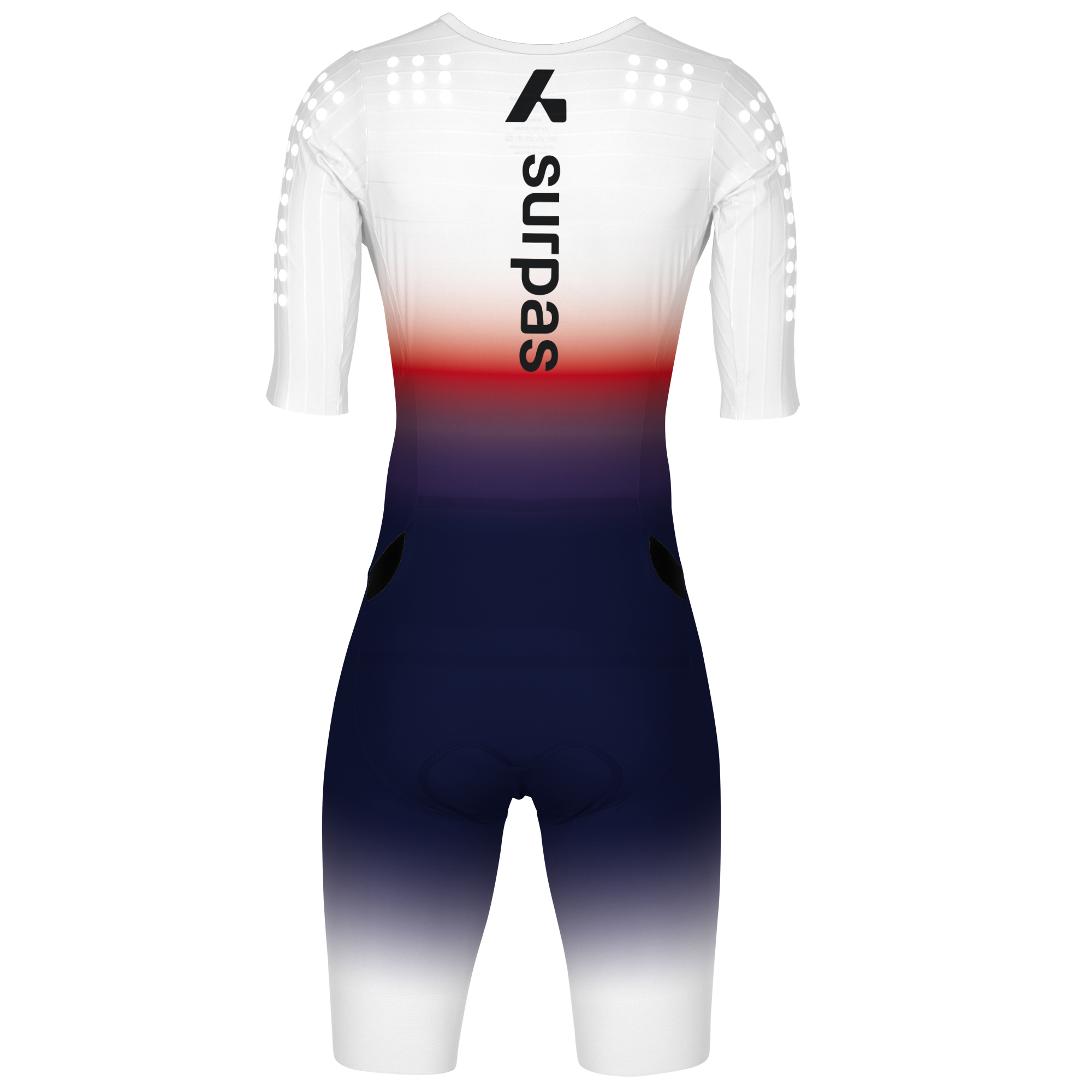 Thermoregulated middle-distance padded speedsuit with aerodynamic turbulators for speed and a back pocket for nutrition. Now with GPS pocket.